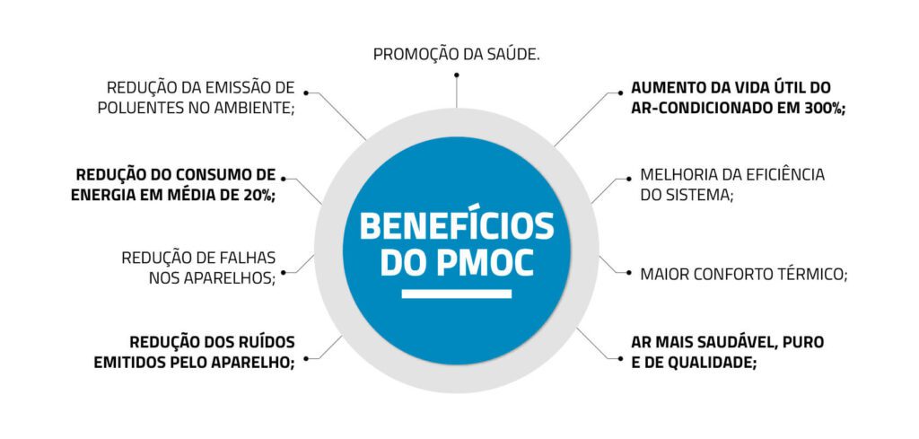 O PMOC é um planejamento de manutenção do sistema de refrigeração. Trata-se de um conjunto de documentos onde devem constar todos os dados, tanto da edificação, como também do sistema de climatização e do técnico responsável. Nele devem estar registrados todos os procedimentos e rotinas referentes a manutenção desse sistema de climatização, de forma que comprovem sua execução. Por outro lado, o PMOC pode ser visto como uma manutenção programada do sistema de refrigeração que garantirá a qualidade e eficiência do ar condicionado que climatiza o ambiente, evitando o desgaste desnecessário do equipamento, a proliferação de fungos e prevenindo doenças.